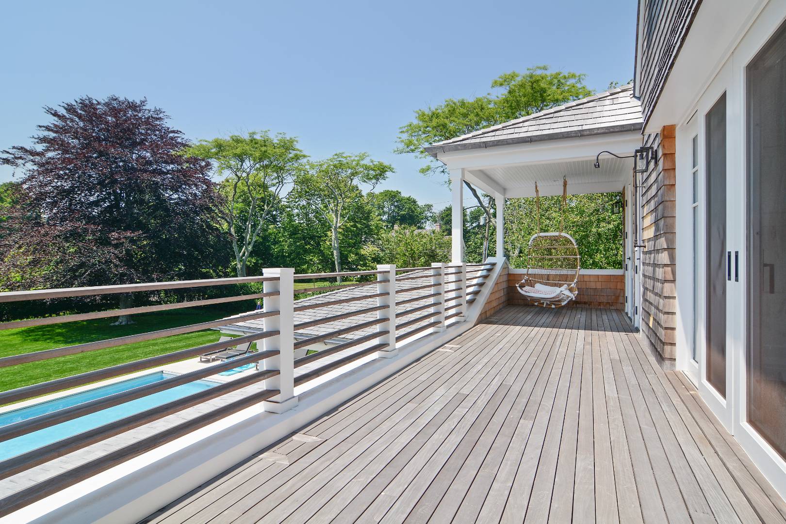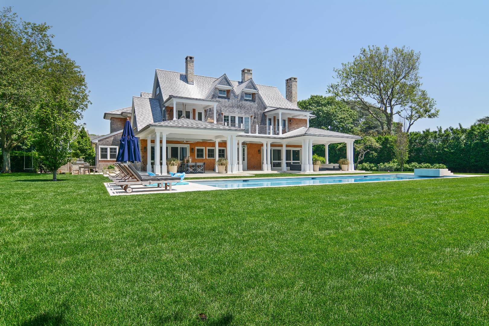 New, beautifully constructed 7,500 +/- square foot home one block from Gin Lane Beach and close to Southampton Village. The elegant, Contemporary residence features seven bedrooms, six full baths and two half baths, four outdoor showers, airy attic bonus room with roof deck and 360* views, a state-of-the-art kitchen and large outdoor argentine-style wood burning grill. The wonderfully designed outdoor and indoor dining areas, outdoor and indoor living areas with a total of four fireplaces, (two gas and two wood) make it a desirable beach home. A sauna, workout area with Peleton bike, 60 foot pool, three-car garage and amazing landscaped gardens for great entertainment. Enjoy life on one of the most desirable streets in Southampton.